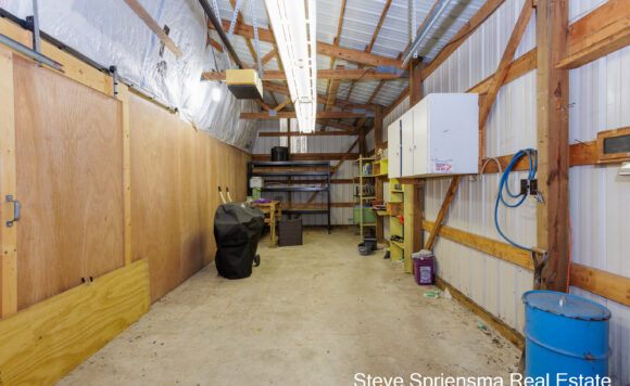Master Bed, walk-in & private bath, oversized glass shower. 2nd bedroom makes a perfect home office. Lower level offers awesome finished space with a huge rec. room (custom bar), 3rd ample bedroom and a full bath. Workshop area, room for a home gym & mechanical. Huge pole barn (16’x30′ woodshop), see it & fall in love!